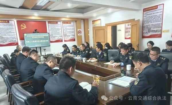 会议要求,全体干部职工要将全会精神的磅礴力量转化为推动交通执法工作提质增效的具体实践。一要在“政治引领”上持续用力,巩固深化学习机制,擦亮“党旗鲜红映雨林·交通执法耀党徽”党建品牌,将党的领导贯穿执法规范化建设全过程。二要在“制度完善”上精准发力,全面梳理优化执法全流程制度规范,强化刚性约束,夯实规范化根基。三要在“科技赋能”上寻求突破,深化智慧执法系统应用,以信息化驱动执法现代化。四要在“监督制约”上织密网络,健全内外部监督机制,让执法权力在阳光下规范运行。五要在“素质提升”上久久为功,加强全方位能力培训,锻造德才兼备的执法队伍。六要在“服务大局”上彰显作为,聚焦西双版纳支队发展,以规范执法保障路网安全畅通、持续开展路域环境整治、超限超载治理、安全隐患排查,让执法既有力度又有温度。