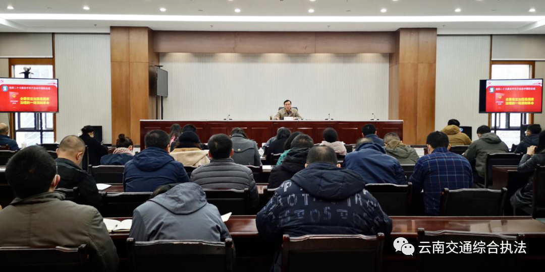 局长、党委书记李明康作题为《持续兴起学习宣传贯彻党的二十大精神热潮 不断汲取推动交通执法高质量发展智慧力量》的专题宣讲,对党的二十大报告提出的一系列新观点、新论断、新思想、新战略、新要求作了详细阐释;聚焦党的二十大报告全面依法治国、建设法治中国相关论述,阐述深化交通执法改革的重要意义、基本要求和政策措施。