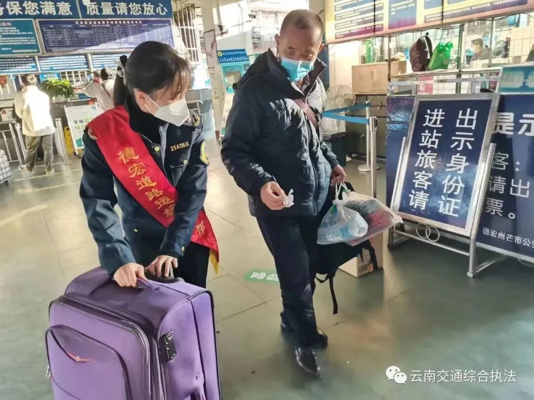 疫情防控进入新阶段,今年春运“人气归来”,各大客运站客流持续增加。全省道路运输执法部门在客运站设置志愿服务台,面向旅客普遍性需求和老幼病残孕重点旅客群体开展志愿服务。在客运站售票处、安检口、候车厅为返乡旅客提供购票咨询、乘车引导、维护秩序,方便旅客快捷进出站,让春运回家的起点温馨而感动。同时,今年春运正值中老磨憨口岸国际道路运输管理业务由西双版纳州移交昆明市,昆明市运管局组织青年团员踊跃报名参加志愿者服务队,于1月19日赶赴磨憨口岸支援,与站点人员一起完成出证、出境查验、入境查验、入境标记等工作,每天工作时长达13小时,切实保障春节期间磨憨口岸国际道路运输工作的正常开展,在岗位的坚守和奉献中践行交通执法人员的责任与使命。