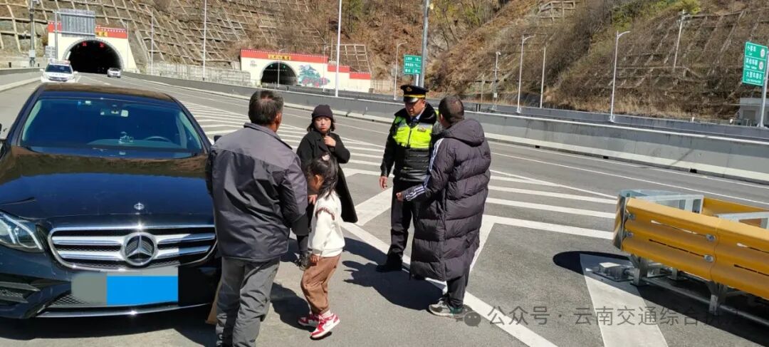2月14日14时20分,大队执法人员巡逻时发现有一辆轿车因左前轮意外爆胎停在自救匝道口,随行的小孩和老人在烈日下无处可避,且自行呼叫的救援车辆至少需要2个小时才能到达现场,由于车辆位处隧道群,加之车流量较大,停车位置比较危险。执法人员在检查车辆情况后,建议司乘人员选择最近的出口先驶离高速公路,考虑所处位置距离虎跳峡收费站不足5公里,遂将其护送至虎跳峡收费站内等待救援,为其提供矿泉水并在大队食堂里提供了午餐。