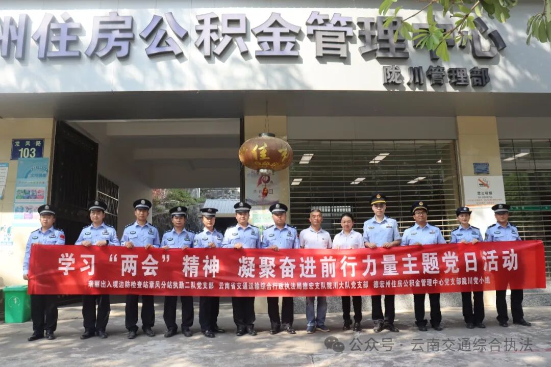 如何深入学习贯彻全国两会精神?如何把学习成果转化为实践行动?4月2日,一场联合支部主题党日活动在云南省交通运输综合行政执法局德宏支队陇川大队举行。陇川大队党支部、瑞丽出入境边防检查站章凤分站执勤二队党支部与德宏州住房公积金管理中心党支部陇川党小组的党员们共同学习全国两会精神,传递“精神”火炬,感受“榜样”力量。