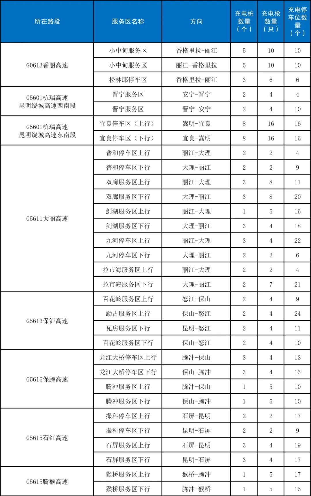 @新能源车主 戳我速看云南高速公路服务区充电桩分布图!