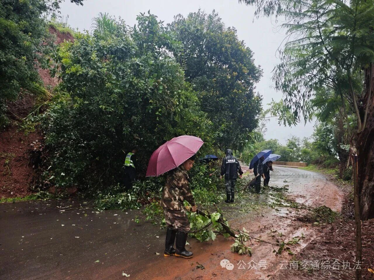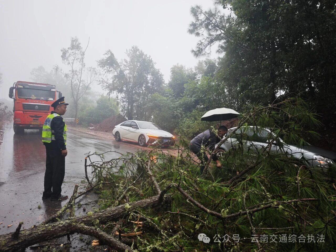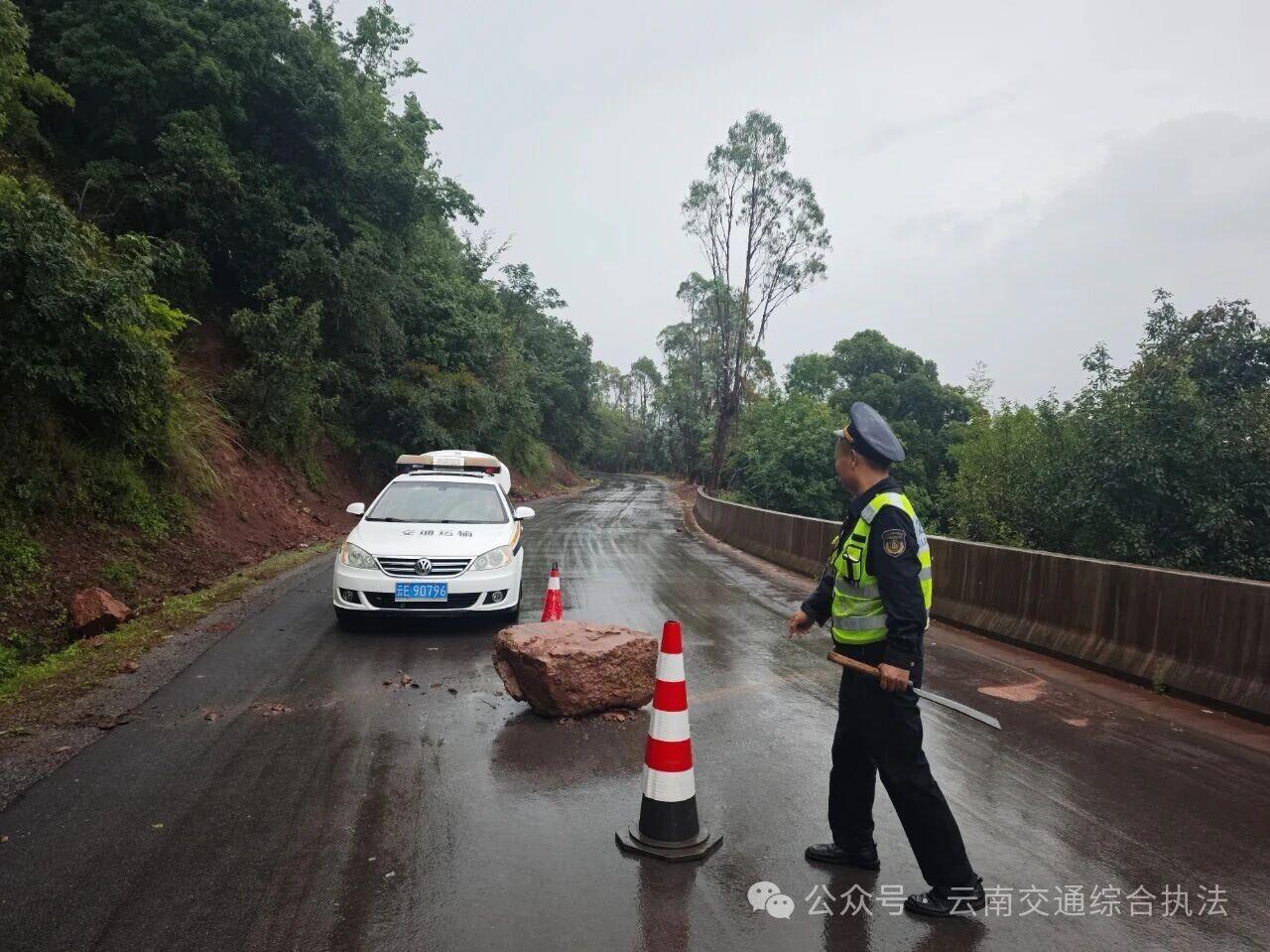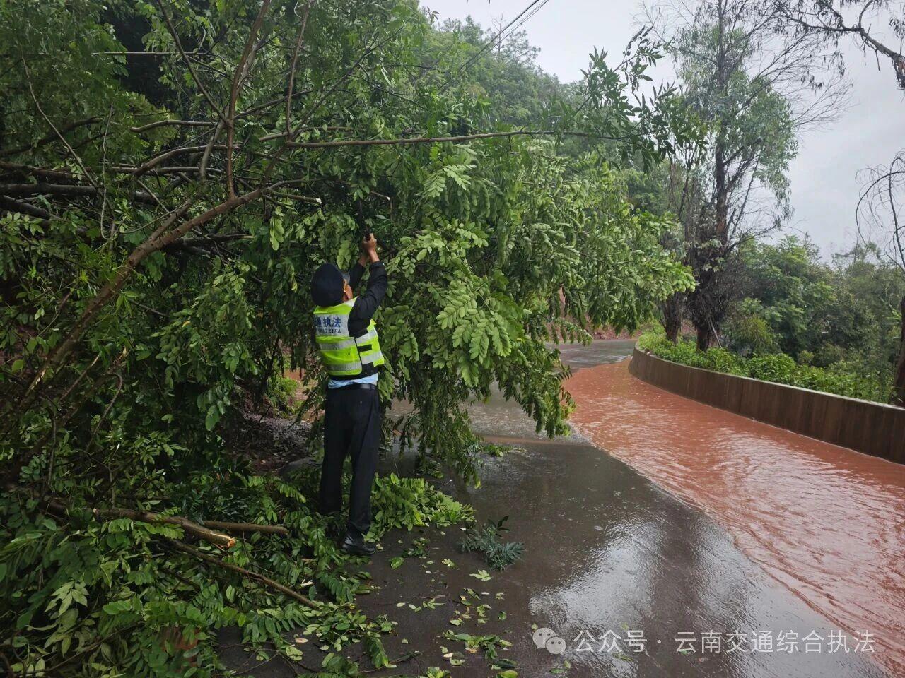 受近日台风天气影响,楚雄州双柏县境内遭遇强降雨天气,导致公路沿线出现多处树木倒伏、边坡坍塌及严重积水等险情,严重威胁道路交通安全和畅通。省交通执法局楚雄支队双柏大队迅速启动应急预案,组织交通执法人员顶风冒雨投入抢通保畅战斗。在抢险过程中,得到了当地相关部门和过往热心司机群众的鼎力相助,共同谱写了一曲风雨同舟、合力抢险的动人乐章。