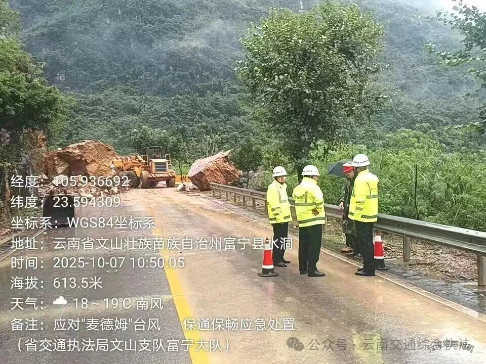 中秋国庆双节期间,“桦加沙”“博罗依”带来的影响仍未消退,台风“麦德姆”又裹挟着狂风暴雨侵袭文山州,给省交通执法局文山支队辖区公路带来严峻考验。在汛情叠加假日出行的双重压力下,文山支队闻“汛”而动,全体执法人员严阵以待,全力守护群众的平安出行路。