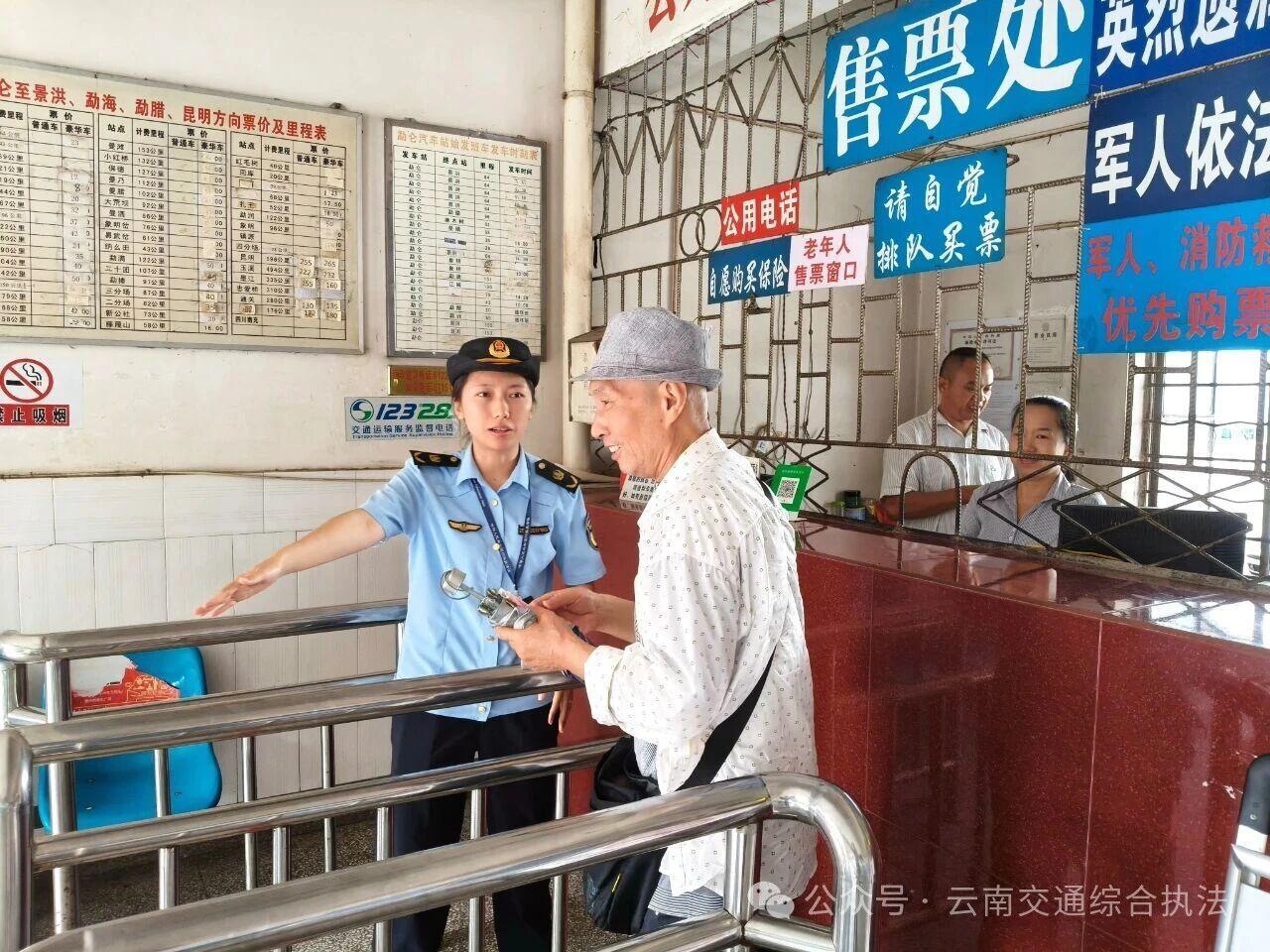 面对三位老人的困境,执法人员迅速行动起来:耐心安抚他们的情绪,主动帮助与拖车司机沟通确认抵达时间;见老人在风雨中等待多时、身心疲惫,便贴心请他们到执法车内休息,并递上热水取暖。然而,新的难题接踵而至——赶到的拖车仅能搭载驾驶员,无法运送三位老人。更棘手的是,白先生年事已高,不会使用手机购买车票,加上人生地不熟,不知如何前往目的地。“您别急,我们送您去车站!”执法人员当即决定提供帮助,驱车将白先生送至就近车站,全程陪同购票,协助查询车次、规划路线。临别时,还特意叮嘱车站工作人员:“这位老先生年纪大,不会用手机也听不懂方言,麻烦您多关照。”