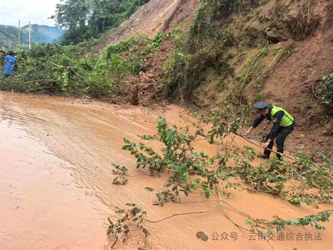 近日,普洱市出现大范围强降雨,省交通执法局普洱支队辖区天猴高速墨临段及国道G215、G323线等多条公路受灾,泥石流、水毁、塌方严重,导致部分路段交通中断。面对严峻汛情,普洱支队及所属各大队闻汛而动,昼夜奋战,全力保障公路安全畅通。