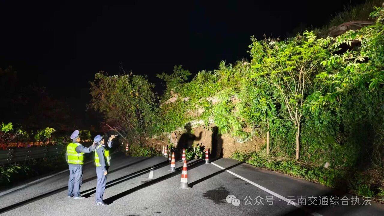 联勤联动,筑牢防线。汛情期间,各大队与公路养护、公安交管等部门协同配合、信息共享、联合处置,形成了防汛保通的强大合力。高速公路一大队昼夜奋战,三班轮转,积极参与墨临高速墨江往临沧方向K581+194-384处山体滑坡隐患排查,配合交管等部门做好勐大收费站临沧方向滞留车辆引导分流,通过各项举措全力筑牢了公路通行安全防线。经过各部门的协力奋战,G323线瑞金—清水河段K2524+500-550处、G215线马鬃山至宁洱K3687+000-K3692+500处全面恢复通行,G215线K3655+106-K3655+156施工路段由突发性阻断转为计划性阻断。