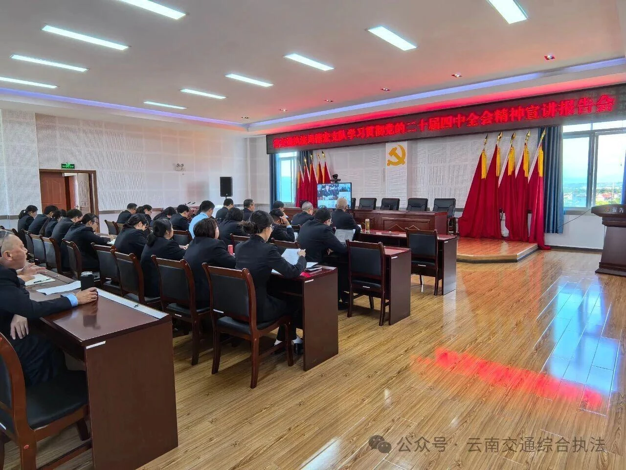近日,省交通执法局德宏支队党委举行学习贯彻党的二十届四中全会精神宣讲报告会。党委书记、支队长晋崇钧作专题宣讲,支队全体干部职工共计70余人参加会议。