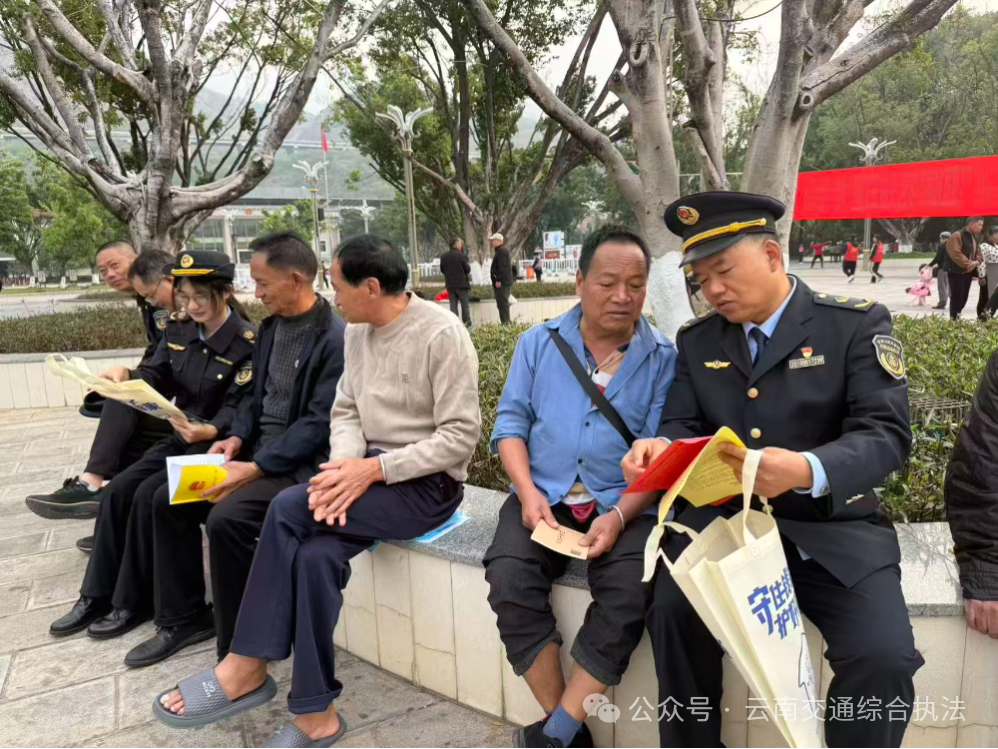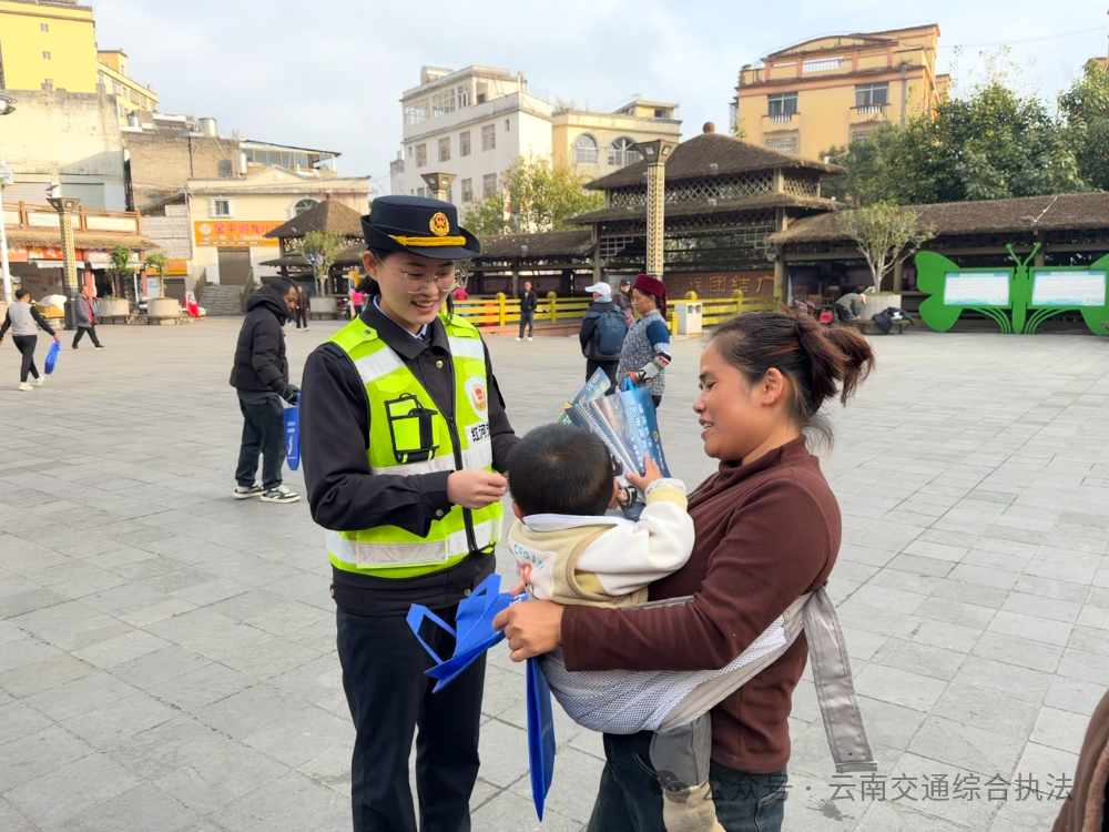 元阳大队参与地方政府联合开展的法治集中宣传活动,以资料发放、现场答疑的形式进行,聚焦群众关心的热点难点问题,并采用“汉语+少数民族语言”双语宣讲模式,增强吸引力和感染力,引导群众自觉尊法学法守法用法。