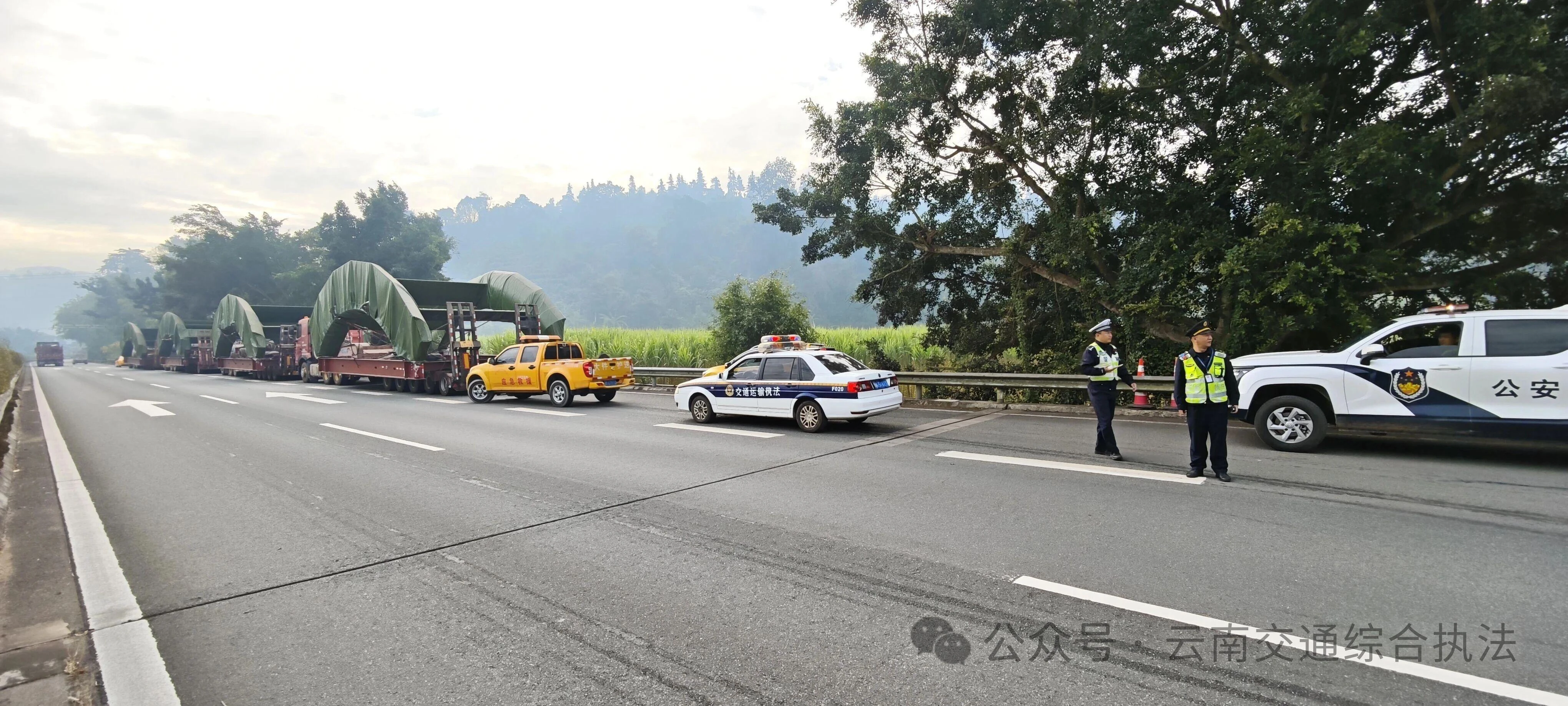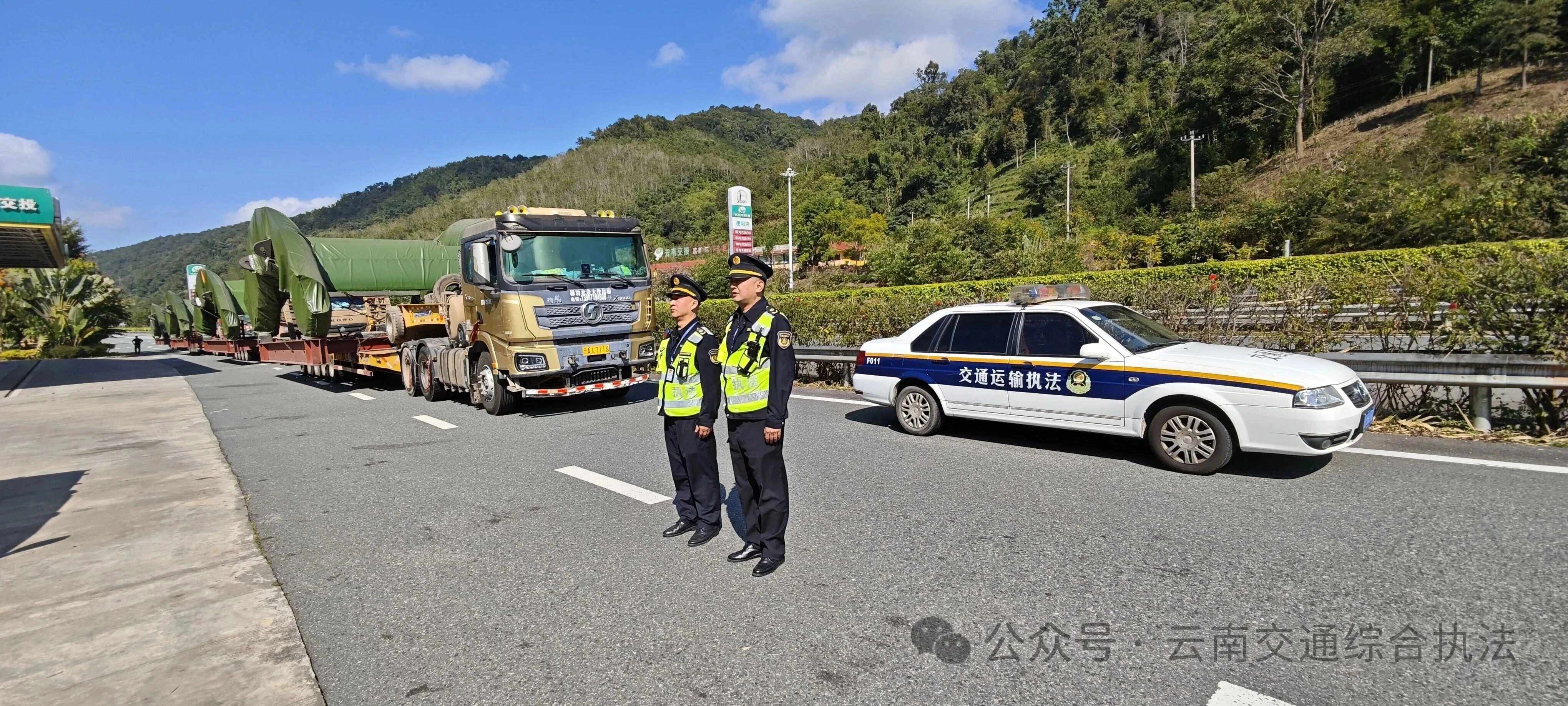 近期,省交通执法局西双版纳支队高速公路一大队立足本地“雨林高速”“边疆通道”区位特点,聚焦大件运输车辆通行安全保障核心任务,以“精准执法+联动协作+优质服务” 为抓手,顺利完成G8511昆磨高速辖区内4辆装载转轮分块的大件运输车辆保通工作,彰显了边疆交通运输执法责任与担当。