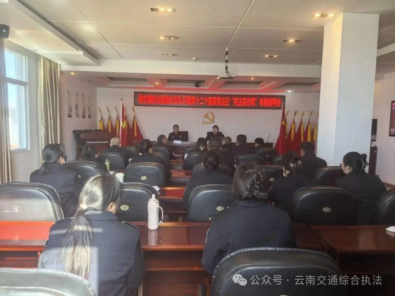 坚持全员覆盖、学用结合,分层分类提升法治能力。支队机关组织专题学习,结合行业法规深入解读宪法对执法工作的根本要求。各大队因地制宜开展特色学习:维西大队结合案例研讨促进知行合一;德钦大队聚焦日常执法高频场景,强化法规应用训练,同步组织宪法宣誓仪式;香格里拉大队围绕重点执法领域细化法规条款解读;高速公路一大队通过多种形式推动学习常态化。