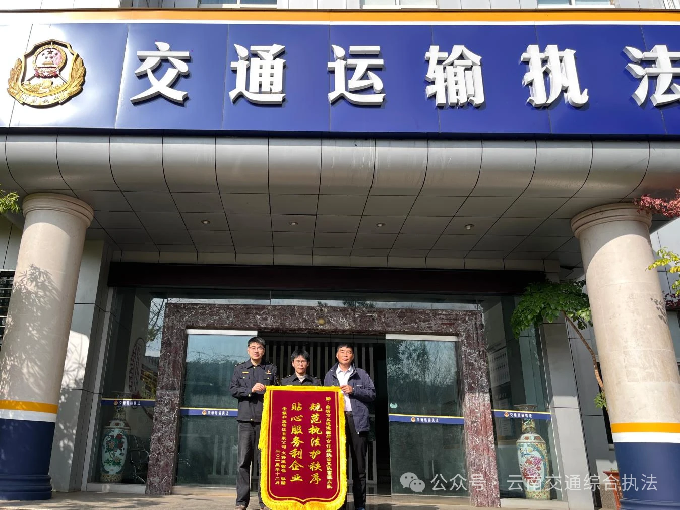 近日,安徽和旋物流有限公司工作人员专程将一面印有“贴心服务利企业 规范执法护秩序”的锦旗送至曲靖市交通运输综合行政执法支队富源大队执法人员手中,言语间满是赞誉。这温暖的一幕,正是富源大队近年来深耕规范执法、践行“执法为民”理念的生动写照。