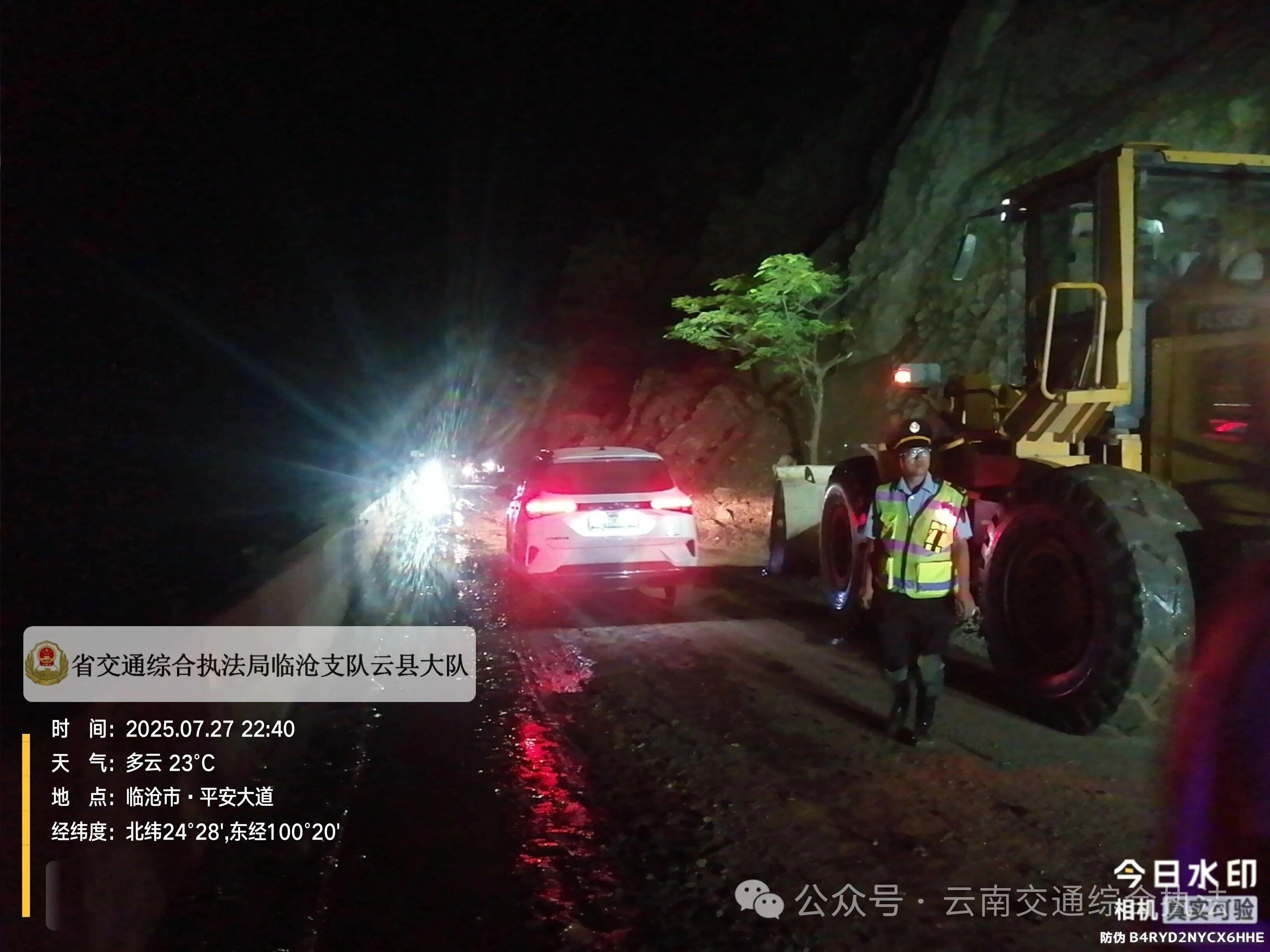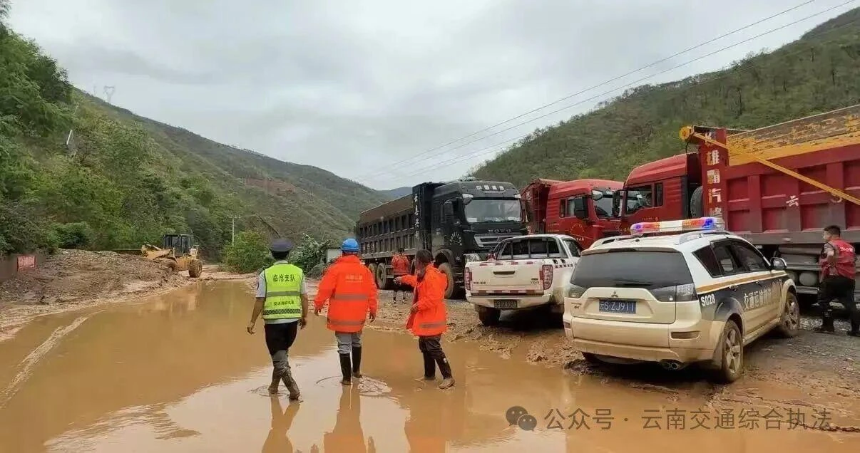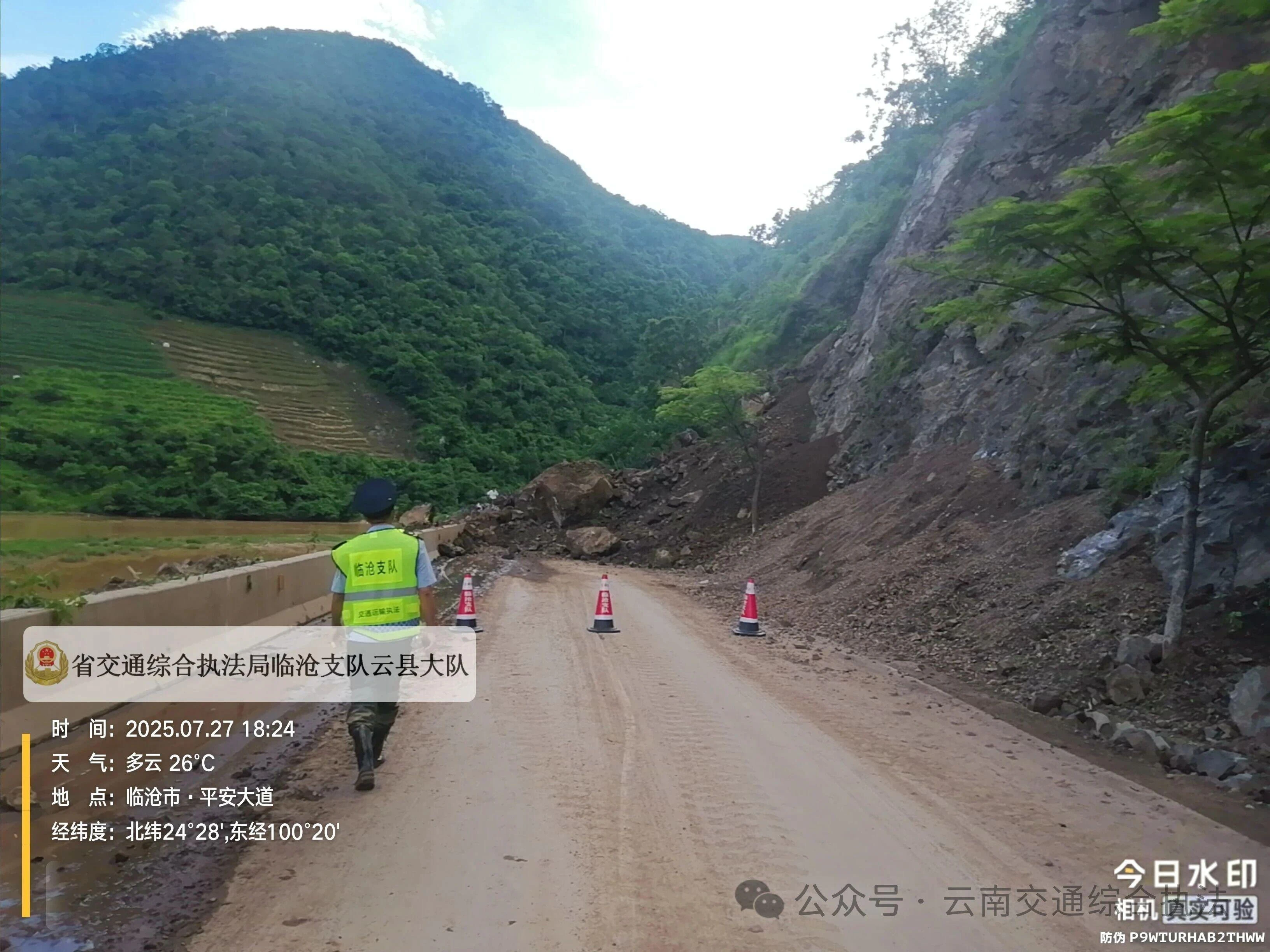 2025年汛期以来,省交通执法局临沧支队云县大队辖区路段地质灾害频发、道路损毁严重,防汛保通任务异常艰巨。面对严峻考验,大队闻“汛”而动,严格遵循云南省“1262”预警响应机制和临沧支队应急叫应机制,全面落实“三管三应三落实”工作部署,迅速组建以党员干部为核心的攻坚专班,让党旗在防汛抢险一线高高飘扬,以“时时放心不下”的责任感,全力守护辖区道路安全畅通。