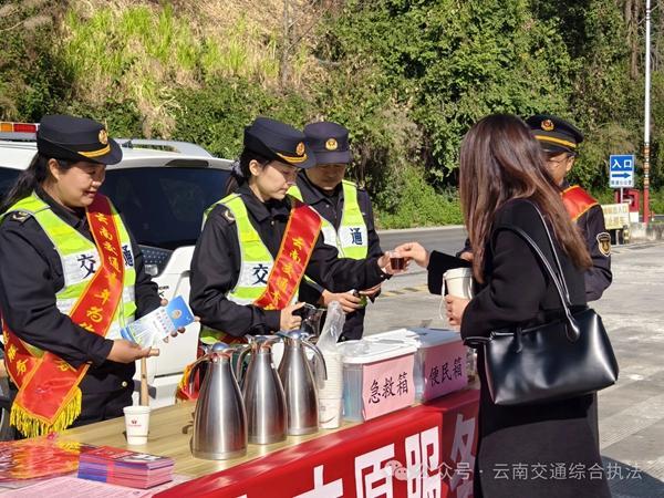 岁末寒冬,年意渐浓,春运的归途承载着万千家庭的期盼与牵挂。为让返乡之路更有温度、更添温情,省交通执法局怒江支队团委以“暖冬行动 志愿同行”为主题,开展志愿服务活动。支队下辖五个大队紧扣岗位实际、聚焦司乘需求,将志愿服务延伸至公路沿线、超限运输检测服务窗口、车流量较大的高速公路服务区等地。青年志愿者们肩披“云南交通为您服务”红绶带,或身着志愿服务红马甲,精神饱满、热情洋溢,以真挚的笑容、贴心的服务,迎接每一位奔波在路上的返乡人,用青春力量守护平安归途,用真情服务点亮春运旅途。