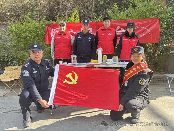 在贡山普拉底乡腊咱村,贡山大队坚持党建带团建,聚焦春运服务保障,设立青年志愿服务岗。党员示范引领,青年志愿者主动靠前,面向货运司机与过往群众普及法律法规、宣传安全出行,提供热水、应急帮扶等暖心服务,以党建红引领志愿红,用责任与担当守护辖区道路平安有序。
