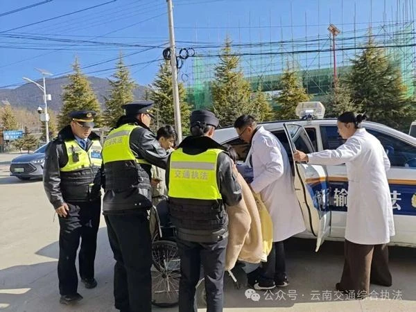 执法人员迅速响应,首先询问游客状况,在现场找寻药品和保暖物品,避免游客因严寒天气加重不适;考虑到游客身体虚弱、无法自主行动,且小中甸地区海拔较高、气候特殊,拖延就医可能存在风险,执法人员当机立断,快速与小中甸卫生院取得联系,详细说明游客身体状况,恳请医院做好接诊准备,并特意提醒医护人员携带担架、急救药品等相关物资,充分发挥“执法+医疗”联动优势,为游客就医开辟“绿色通道”,将游客安全送医。