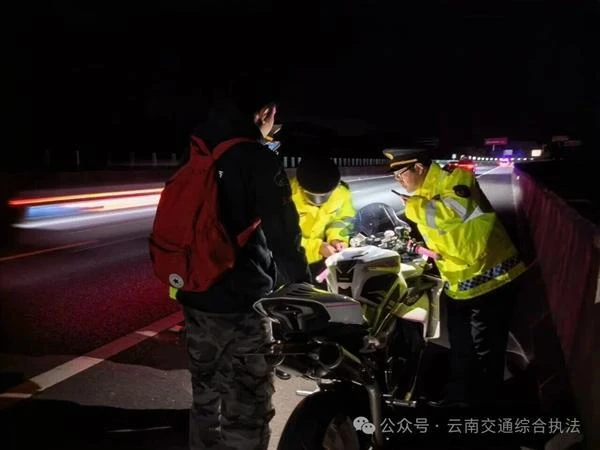 “别着急,我们来帮你想办法!”执法人员一边安抚驾驶员情绪,一边迅速检查车辆。经查看,摩托车疑似发动机故障,现场无法修复。考虑到夜间在高速停留的危险性,在确保安全的前提下,两名执法人员负责在后方指挥交通,另外两名则与驾驶员一左一右,合力推着摩托车沿应急车道缓缓前行。深夜寒风凛冽,艰难推行2000米后,故障摩托车终于被安全推入服务区。看到执法人员被汗水浸湿的制服,驾驶员感动得连连道谢。执法人员擦了擦汗,微笑着叮嘱:“夜间行车一定要注意安全,等天亮找修理工好好检查车辆,确保没问题后再上路。”