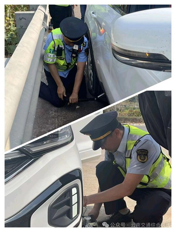 2月18日11时30分,春节假期的昆磨高速公路上车流如梭,省交通执法局西双版纳支队高速公路一大队执法人员巡查至K648+900M处时,发现一辆小型客车打着双闪停靠在应急车道,极易引发交通事故。执法人员立即摆放锥桶设立安全防护区,一名队员疏导交通,另一名队员将驾乘人员转移至安全区域。得知车辆突发爆胎,驾驶员因缺乏工具和经验手足无措时,执法人员一句“别急,我们帮你”稳住了其情绪,随后熟练开展换胎操作,十分钟便完成轮胎更换。临走前,执法人员贴心叮嘱驾驶员及时检修备胎,确保行车安全。同样的温情画面也在大渡岗服务区悄然上演,2月19日14时20分,一位驾驶员匆匆找到执法人员紧急求助,称车辆突然出现胎压报警,急需加气设备。接到求助后,执法人员没有丝毫迟疑,立即响应群众诉求,迅速取出随车携带的应急加气设备,熟练地为车辆检查、加气,全程耐心细致,不仅及时化解了驾驶员的困境,更细致叮嘱其后续行车中留意胎压变化,及时消除行车安全隐患。西双版纳支队执法人员用高效、贴心的服务,践行着守护群众平安出行的承诺。