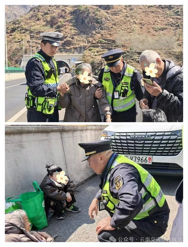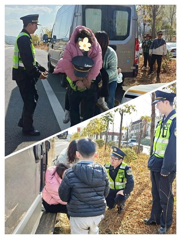 2月20日12时58分,返程高峰最繁忙时段,G4216蓉丽高速干箐塘隧道下行线发生两车追尾事故,后方迅速形成长距离拥堵,极易引发次生事故。接报案后,丽江支队执法人员立即赶赴现场,划定警戒区、疏导车辆、安抚驾驶员。执法人员发现事故车内老人腿部不适无法行走,四岁男童受惊吓沉默不语,执法人员马上协同交管人员将老人搀扶至安全区域,用备用毯子保暖,轮流安抚;同时蹲身温柔安抚男童。13时40分协助医护人员送老人就医,13时58分拖离事故车辆,14时08分恢复交通,全程无次生事故,用高效与温情化解危机。