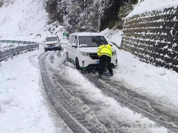 面对持续低温雨雪天气,贡山大队加密路面巡查频次,强化现场管控和车流疏导,实时向驾乘人员发布路况信息,引导安全通行。同时,深化“执法+养护”联动机制,与公路分局协同作战,高效推进除雪保通作业。截至目前,S318线累计开展除雪保通2次,投入人员34人次、装载机10台、保通车辆10辆,连续作业6小时,清扫积雪路段50余公里,安全疏导滞留车辆55辆、人员52人,有力保障了恶劣天气下辖区道路的安全畅通。