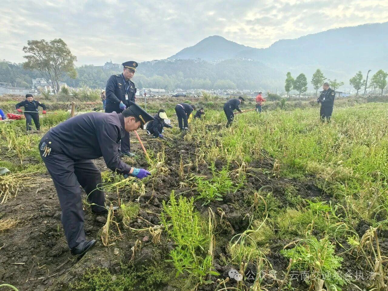 在泥泞的田地里,大家分工协作、干劲十足,有的挥锄挖蒜,有的整理装袋,有的与农户交流生产生活情况,在汗水中切身感受群众生产生活的艰辛,进一步锤炼吃苦耐劳、求真务实的工作作风,提升服务群众的工作能力。活动全程严格坚持“自愿参与、自费购买、市场定价、公平交易”原则,党员干部自行出资、自行带走所采收的农产品,切实帮助农户解决采收、销售的实际困难,全程严守纪律规矩,不增加群众负担、不接受宴请、不发生违规违纪行为,以清廉作风展现交通执法队伍的良好形象。